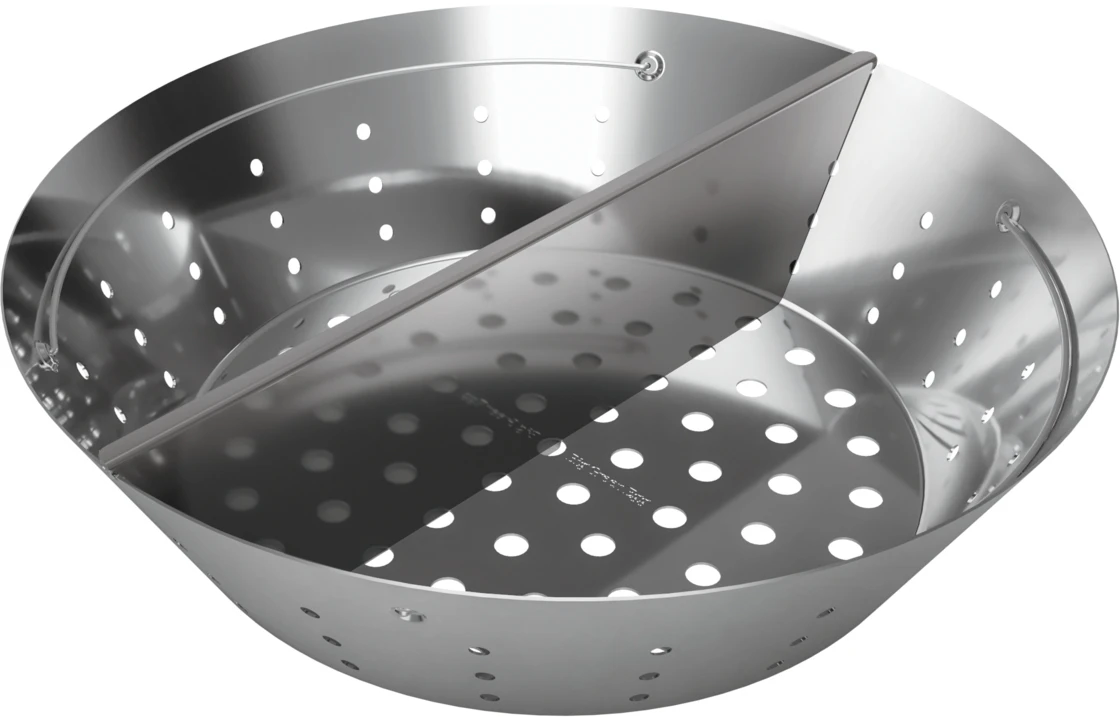 Praktisch befindet sich im Lieferumfang ein passender Kohletrenner. Mit diesem lässt sich der Kohlekorb in zwei unterschiedliche Zonen unterteilen, wodurch Sie auch nur eine Hälfte des Korbes mit Kohle befüllen können und so im Zusammenspiel mit dem optional zweigeteilten convEGGtor-Stein arbeiten können.