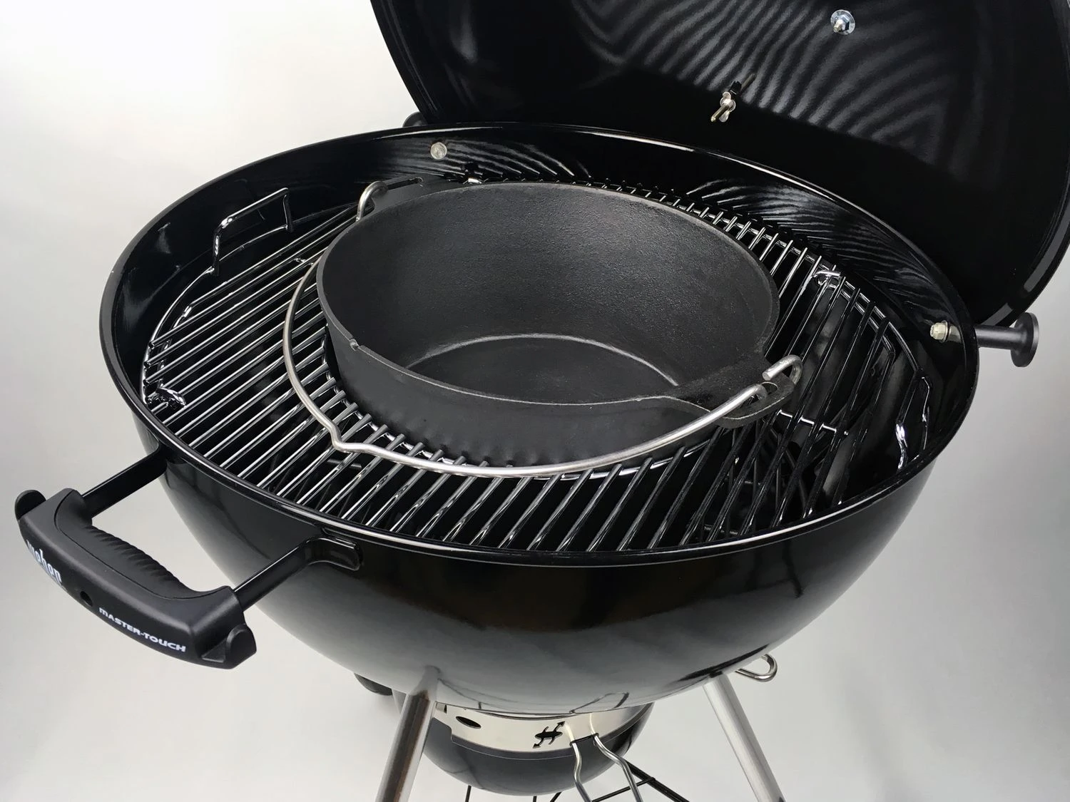 Nach unseren Tests funktioniert das auch im Weber Master Touch Holzkohle Kugelgrill sehr gut. Der Grillfürst Dutch Oven passt in die Weber GBS Aussparung, die Füße stehen sicher auf dem Kohlerost und die Hitze kann wunderbar im Weber Grill zirkulieren. Der Grillfürst DO9 passt in den Master Touch als wäre er ein Weber Dutch Oven.