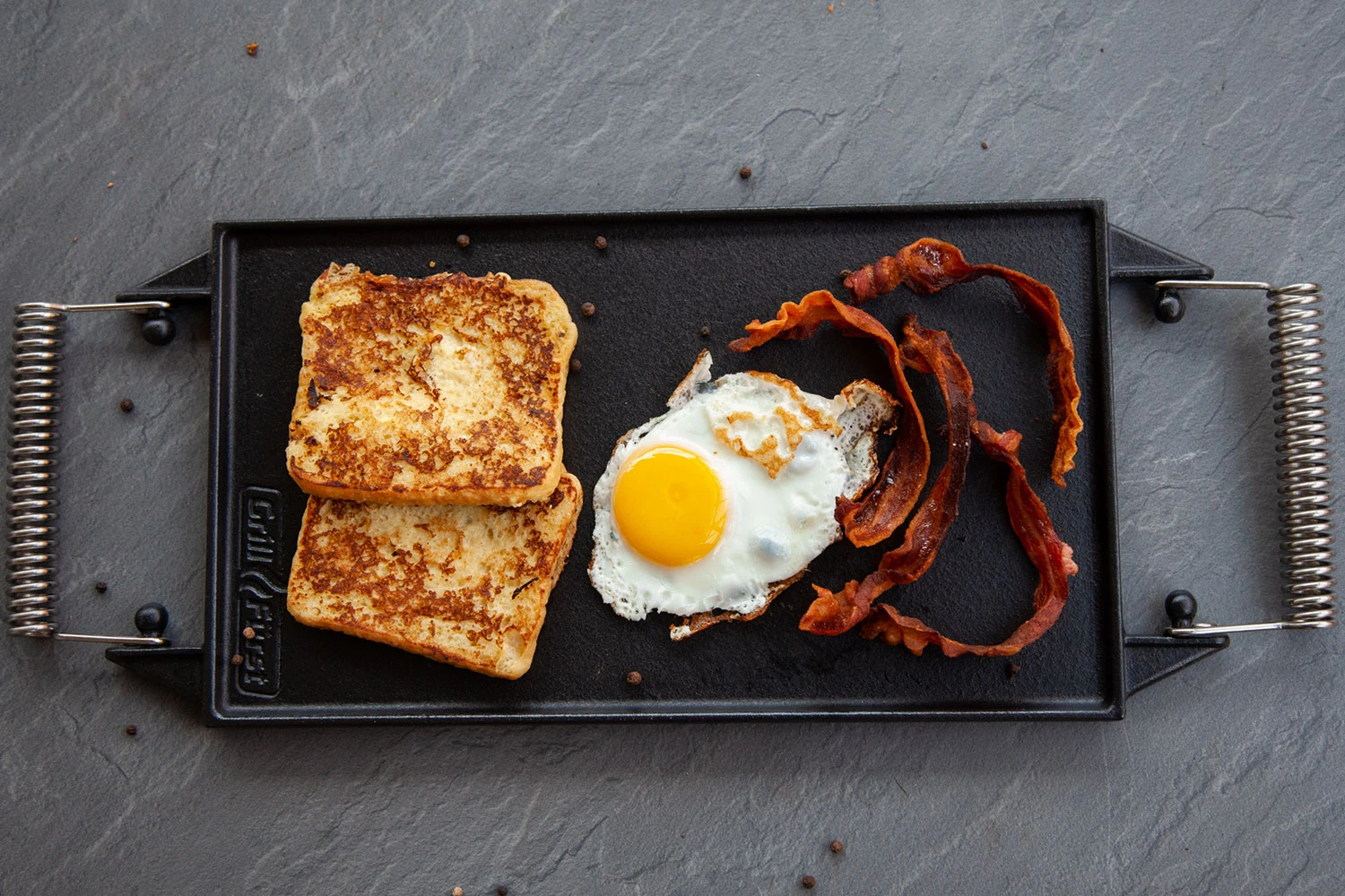 Angefangen bei Spiegelei und Speck über das Braten von Pfannkuchen bis hin zu Fisch und Meeresfrüchten oder dem Garen von Gemüse: hier ist die flache Seite der Grillplatte unverzichtbar.