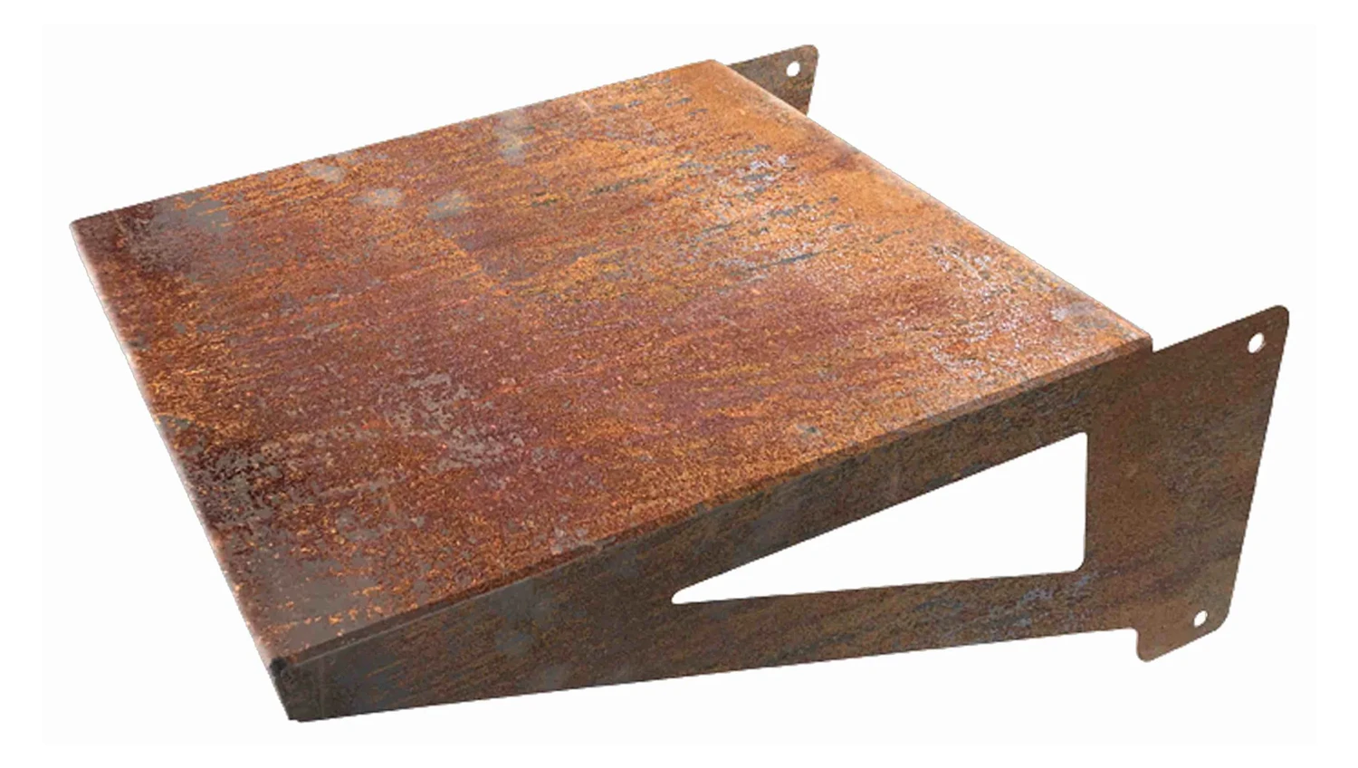 Wie die Feuerstelle Zelos selbst ist auch die stabile Seitenablage aus massivem Stahl mit einer Oberflächenveredelung durch ein natürliches Korrosionsverfahren gefertigt. Die Oberflächenveredelung sorgt dabei nicht nur für eine dekorative, rustikale Optik, sondern dient gleichzeitig als Schutz gegen Durchrostung.
